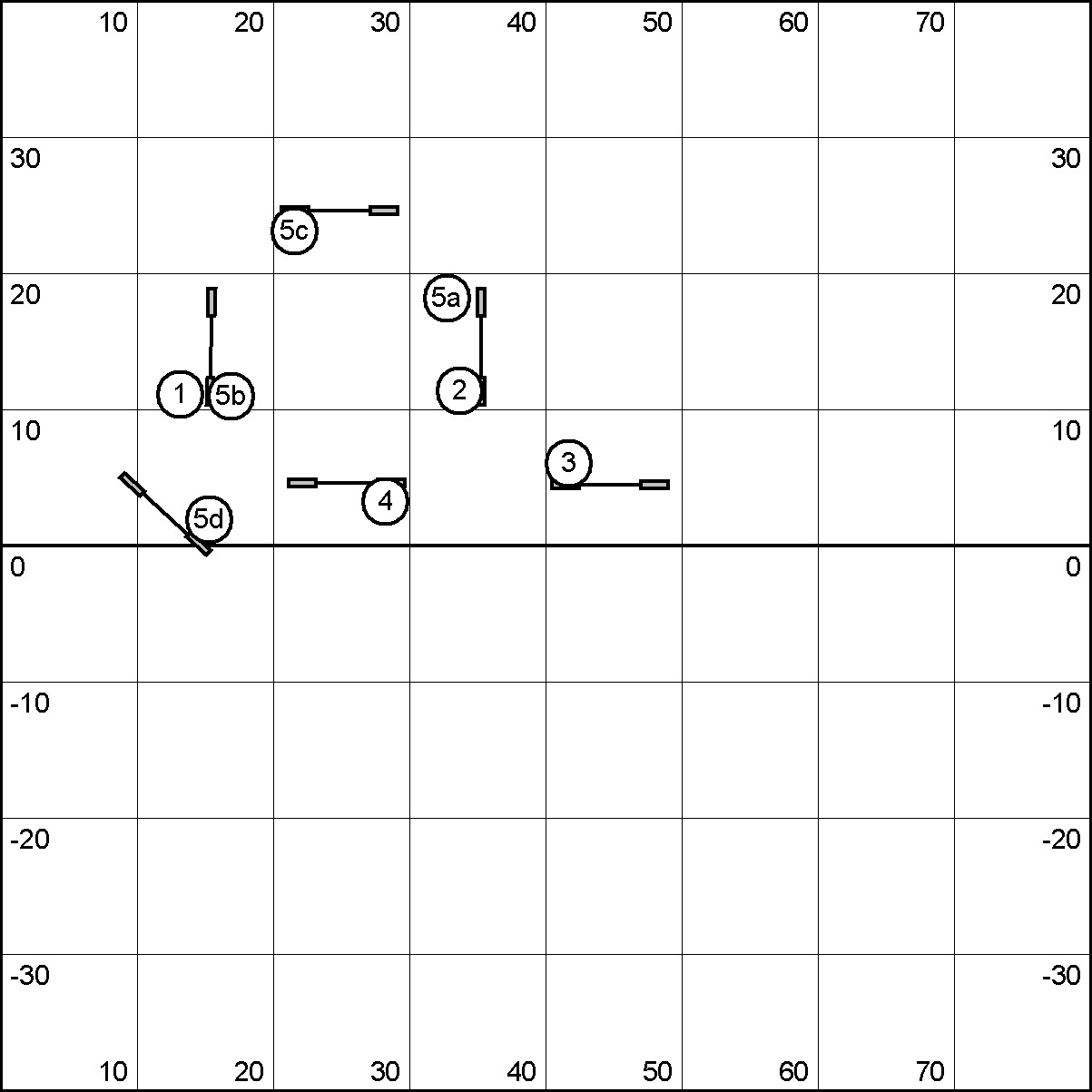 5d is a special case, the serpentine. By definition, a serpentine is a place where you could perform two front crosses–in this case between 3 and 4, and 4 and 5d. Because we are human and slow(er then our dogs), instead of doing this, we instead use our second arm to indicate the dog to take the middle jump, and then return to the original arm. This second arm should occur at the far wing of the middle jump.
