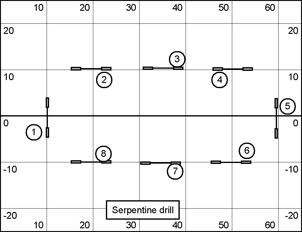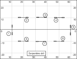 This weekend I worked on couple of variations of the Double Box exercises. One is a drill to practice front crosses while running the diagonal through the box, the other is a serpentine drill.